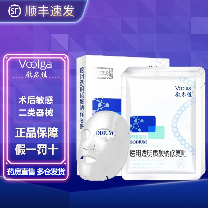 敷尔佳 医用面部修复贴透明质酸钠激光术后敷料减少色素沉着皮肤痤疮 黑膜1盒