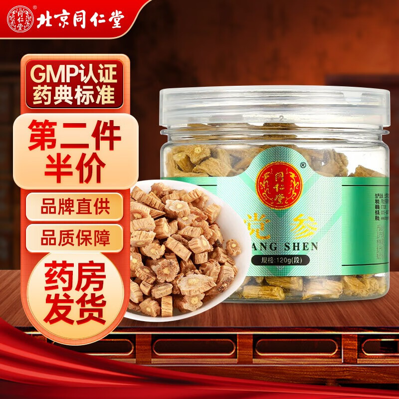 同仁堂北京同仁堂党参片煲汤120g瓶装可泡党参茶自磨党参粉