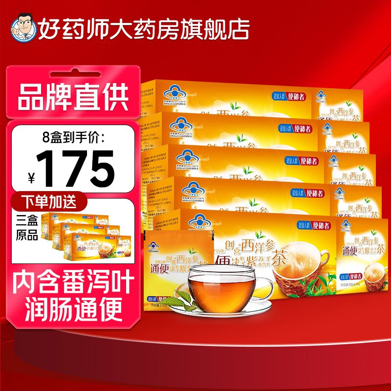 樱花创喜牌西洋参通便茶 便秘茶 通便茶 润肠通便茶清肠清宿便 2.5g/袋*35袋 买5送3原品(实收8盒)