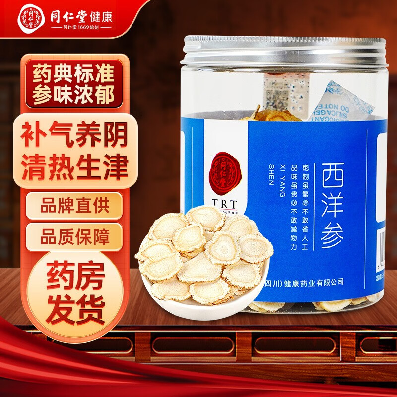 北京同仁堂西洋参片120g/罐产地吉林西洋参可泡水煲汤