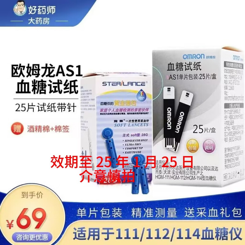 欧姆龙(OMRON)111/112/114血糖仪血糖试纸 家用医用AS1(25条试纸+25支针头)