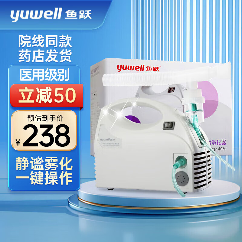 鱼跃(Yuwell)家用医用级压缩空气雾化器成人儿童化痰喷喉雾化泵雾化机吸入器 403C【院线经典款】