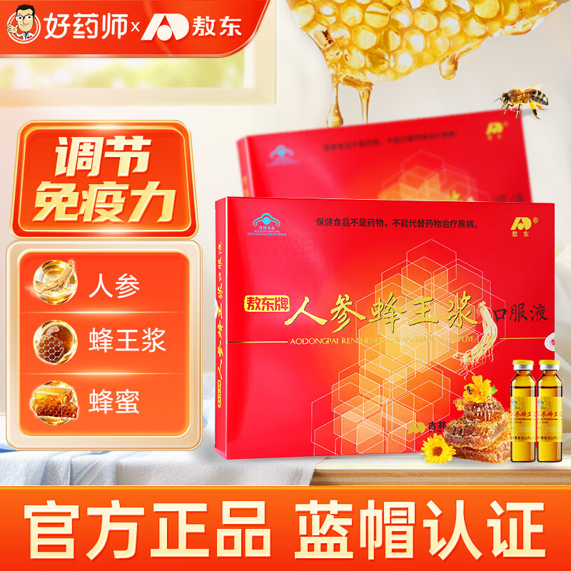敖东吉林敖东人参蜂王浆口服液10ml*20支调节提高免疫力补充营养送礼 2盒【20天量】
