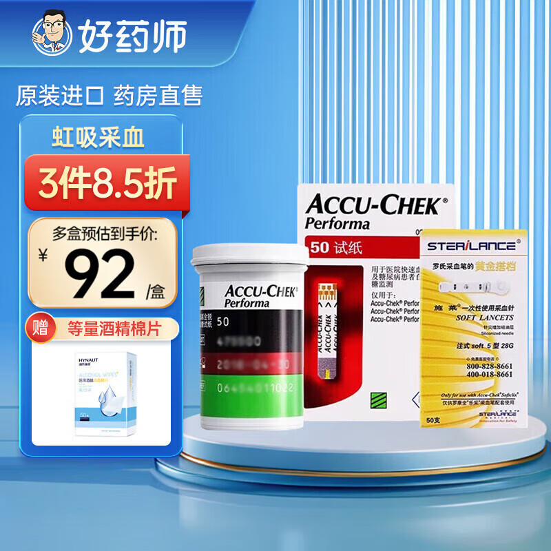 罗氏卓越金采血糖试纸德国家用血糖试纸卓越金采精采型糖尿病试纸 卓越试纸50片+50针+50棉