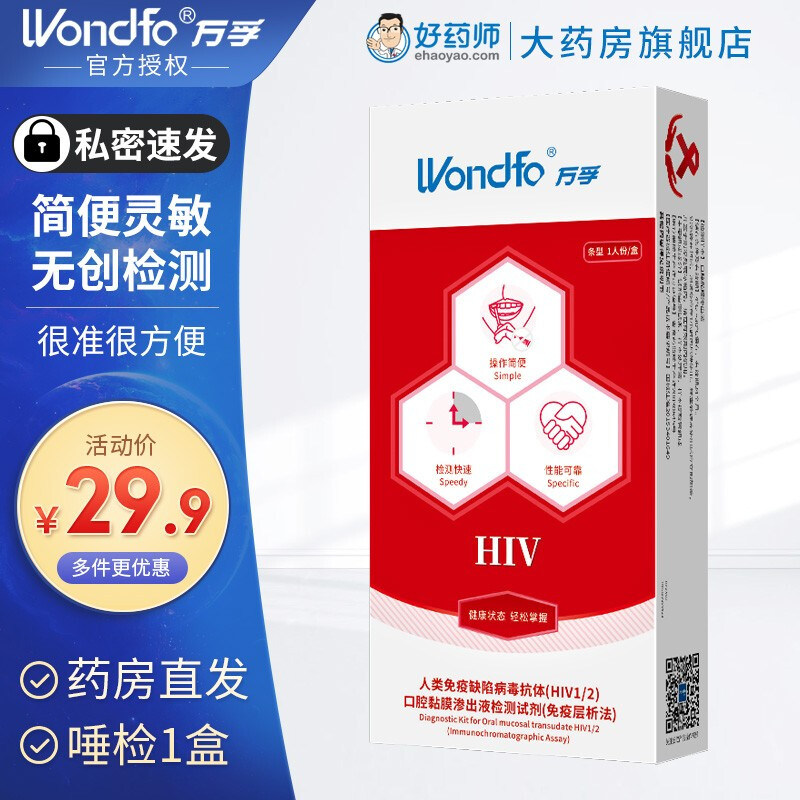万孚Wondfo艾滋病检测试纸 血液唾液HIV检测试纸 【无创检测】唾检1盒(配咽拭子)
