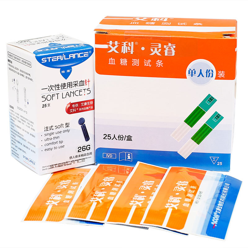 艾科灵睿2灵瑞血糖试纸测试条 血糖仪试纸家用 血糖仪+100片试纸+100针+100棉