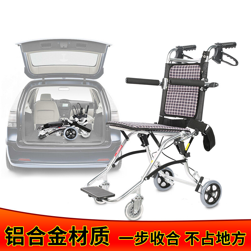 鱼跃轮椅折叠轻便老人儿童轮椅铝合金免充气手推飞机便携硬座带辅刹 H1100铝合金轮椅