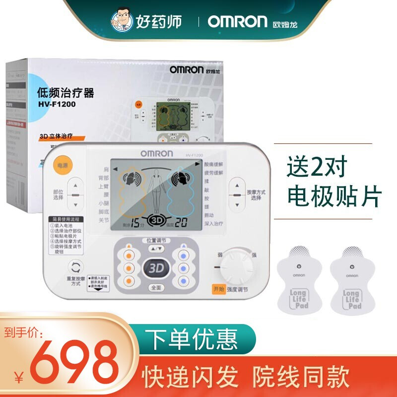 欧姆龙(OMRON) 欧姆龙治疗仪理疗仪 颈椎腰椎低频治疗器HV-F1200 主机+电极片