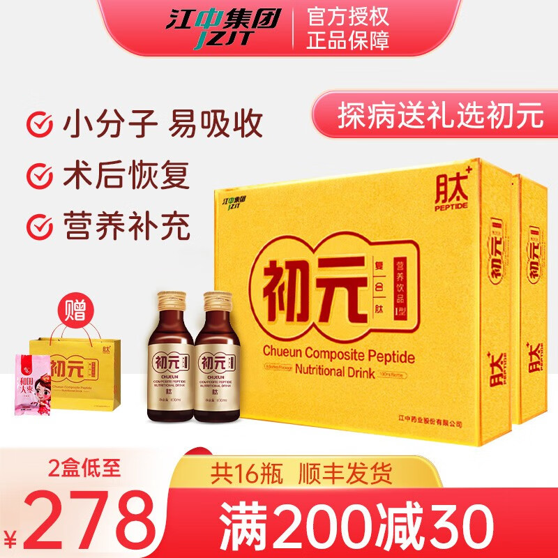 初元顺丰】江中初元复合肽营养饮品Ⅰ型8瓶*2盒礼盒装口服液1型营养