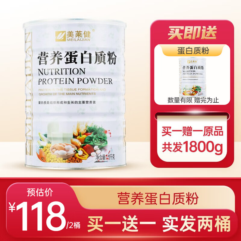 【实惠2桶套餐】美莱健蛋白质粉蛋白粉营养品全家蛋白营养粉2桶实惠装 年货礼盒 营养蛋白质粉1000g 2桶【共2000克】