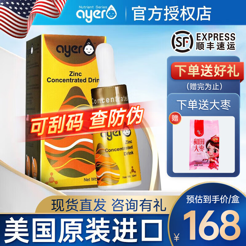 艾儿【顺丰】ayer艾儿锌浓缩饮液30ml美国进口营养补充0岁起正品保证