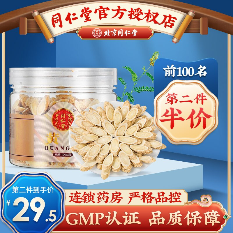 北京同仁堂黄芪片中药材100g/瓶可搭配黄芪党参当归