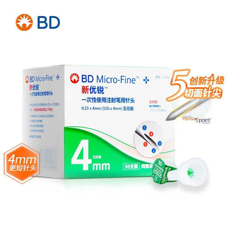 新优锐BD针头一次性注射笔针头胰岛素新升级针头糖尿病大人儿童使用 【196支】4MM 98支*2盒
