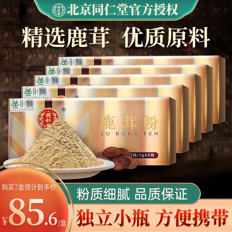 北京同仁堂鹿茸粉1g*6瓶盒装精选梅花鹿鹿茸片独立瓶装方便携带壮肾阳益精血强筋骨调冲泡酒送长辈 1盒【6瓶*1】