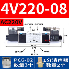 型双头双线圈双控制电磁阀4V220-08 330-10二位五通换向阀 4V220-08 AC220V配插外管6MM接