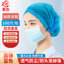 者也 双筋一次性无纺布条形帽 车间防尘网帽厨房厨师头套防油烟蘑菇帽 18寸双筋加厚【蓝色100只】1包