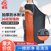 者也 PVC围裙耐磨防水餐饮厨房防油护衣加厚皮围裙屠宰围腰工业耐酸碱耐用罩衣反穿衣 黑红PVC复合围裙【36丝加强加厚款】