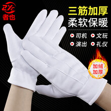 者也 礼仪手套 开车手套舞蹈表演升旗手套白手套检阅表演手套 白色礼仪手套【加绒款L码】1双