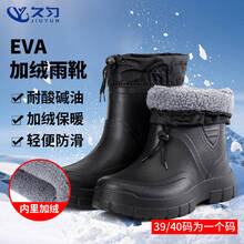 久匀 加绒保暖雨鞋雨靴水靴 冬季防寒靴 EVA轻便防滑耐磨水鞋耐油酸碱劳保鞋 黑色加绒【高22cm】 44