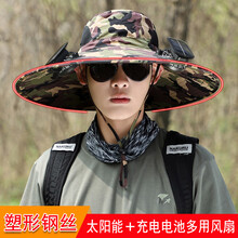 久匀 大沿太阳能风扇帽子户外防紫外线防晒遮阳帽 迷彩2【钢丝+2个挖洞多用风扇】