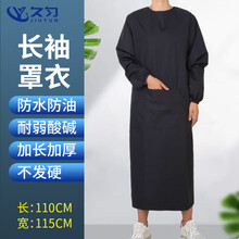 久匀 PW-014 长袖防水布罩衣 防油防污厨房食堂长款围裙 黑色 110x115cm