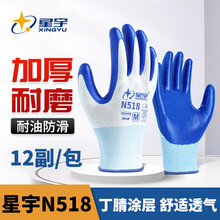 星宇劳保手套 N518丁腈浸胶耐油防滑耐磨劳动工地干活手套 N518 白纱蓝【加厚耐磨口款】 8(M中码)