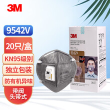 3M KN95活性炭口罩 防尘防工业粉尘飞沫防雾霾PM2.5颗粒物及异味 9542V头戴式有阀20只独立装