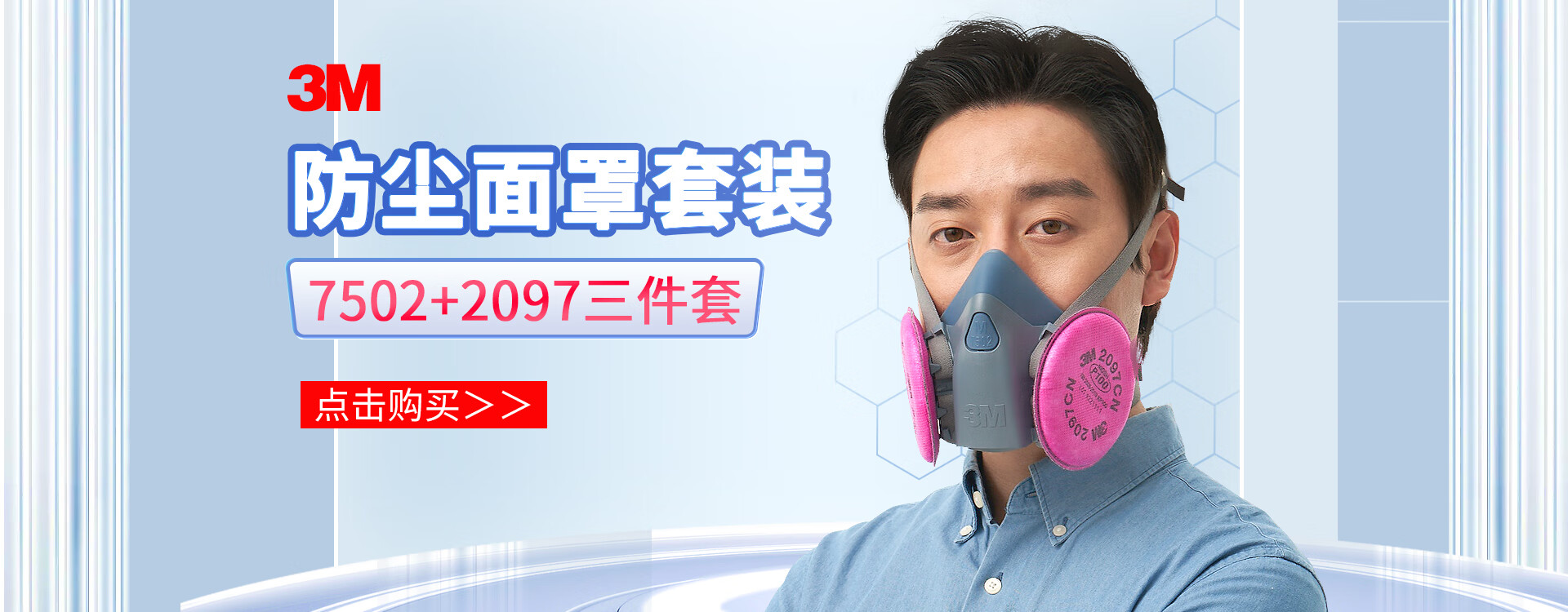 3M 7502+2097硅胶防尘口罩 电焊工防烟防尘专用活性炭面罩防毒面具喷漆装修农药喷洒工厂化工 2097CN滤棉x2片