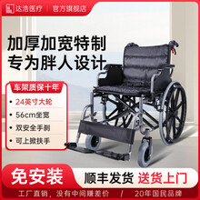 达浩折叠轮椅加大加宽承重300斤扶手可掀防后翻老人手推车轮椅车 便携升级【加大56座宽+承重300斤+防爆胎】