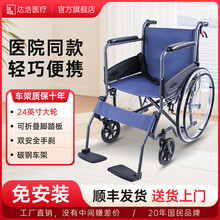 达浩老人轮椅医院同款折叠轻便携带老年瘫痪老人专用手推铝合金代步车 医院同款【高碳钢车架+四刹车系统+24寸大轮】