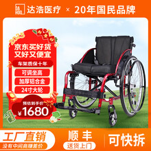 达浩运动轮椅轻便折叠快拆轮旅行便携残疾人专用代步车铝合金竞技大轮 闪光红【铝合金车架/11KG/快拆大轮】