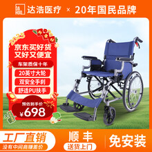 达浩医院同款升级折叠轻便手动老人手推车便携轮椅 医院同款升级【铝合金+可掀扶手+20寸轮】