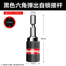 批头转换接头加长电动起子电钻电钻头6.35自动接杆六角柄夹头 黑 黑色六角弹出自锁接杆