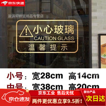 小型玻璃警示贴创意小心提示贴防撞门贴纸商场店铺办公室当心碰头文字贴 【小心玻璃温馨提示】哑光磨砂金 中号【宽38cm 高20cm】