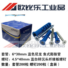 美固小蓝鲨尼龙膨胀管6/8/10mm鱼形套管蓝色膨胀塞鱼式胀管配螺丝 6*30配沉头螺丝200套