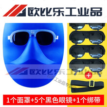 等离子切割机面罩 电焊面罩防护罩头戴式轻便氩弧焊工面具全脸防烤脸烧焊眼镜罩MYFS PC面罩+黑色眼镜5只+绑带