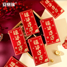安赛瑞 红包 过年可爱金葱红包加厚利是封 压岁包简约书法红包袋 6个 福运连连 SC50324