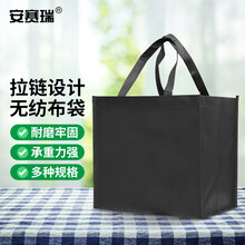 安赛瑞 无纺布手提袋 大容量带拉链礼品购物袋 黑色大号 2A01474