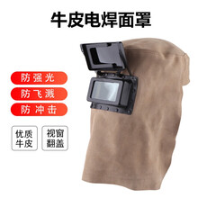 惠利得定制自动变光电焊面罩牛皮护脸防火星隔热烧焊氩弧焊二保焊头戴式焊帽 牛皮电焊面罩