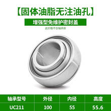惠利得固态油脂UC205 206 207 防水泥沙尘耐腐蚀搅拌收割农机免维护轴承 UC211【固体油脂无注油孔】多层增强型免维护密封