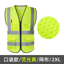 网布反光安全背心网眼透气工地施工马甲交通反光衣荧光服logo定制 003荧黄网布2XL 1
