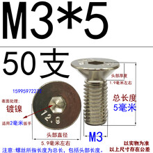 定制12.9级高强度镀镍沉头内六角螺丝SCM435平头螺栓m4m5m6m8m10m12 129级M35(50只)