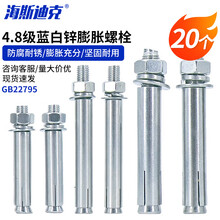 海斯迪克 4.8级(国标)蓝白锌膨胀螺栓 GB22795扩张拉爆螺钉膨胀螺丝 M8*80(20个)