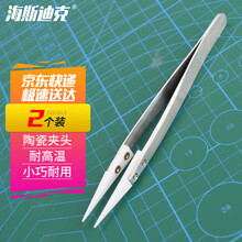 海斯迪克 wj-163 陶瓷镊子 耐高温镊子小零件维修夹取器 不锈钢柄镊子 白色尖头 2个