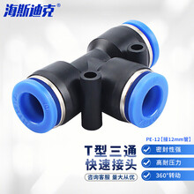 海斯迪克 T型三通PE快速接头 快插气管接头气动元件 接12mm管 PE-12