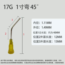 山头林村承琉定制1英寸弯头针塑钢针头螺口针头螺口折弯针头弯角针嘴点胶机针头 塑钢17G1英寸弯45度外径1.5MM