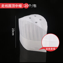 一次性黑色厨师帽子无纺布透气高中帽加厚男女士厨帽餐厅工作帽定 圆顶中帽20个/包白色 走线耐用