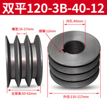 三槽实心皮带盘铸铁皮带轮粉碎机轮马达轮电机轮子B型传送轮 浅灰色双平3B-120-40-12