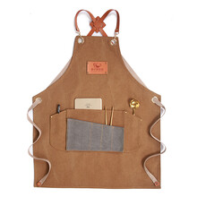 围裙时尚定制防水印logo花店奶茶店咖啡甜点甜品烘焙超市工作服 (成人款)咖色(灰色口袋)