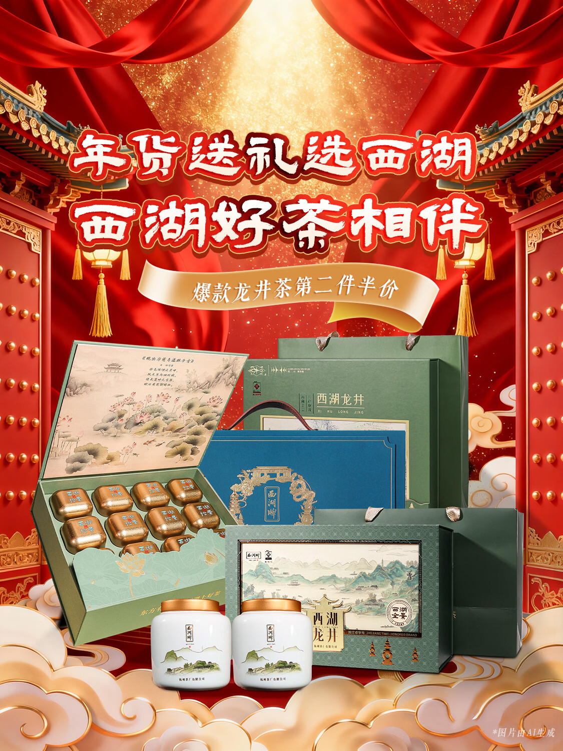 西湖牌2025新茶明前特级精选龙井茶叶春茶绿茶礼盒装过节送老丈人送礼 千里江山-明前特级精选龙井茶200g瓷罐礼盒